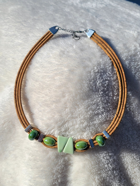 Handmade Emerald Whispers: Cork & Green Bead Necklace