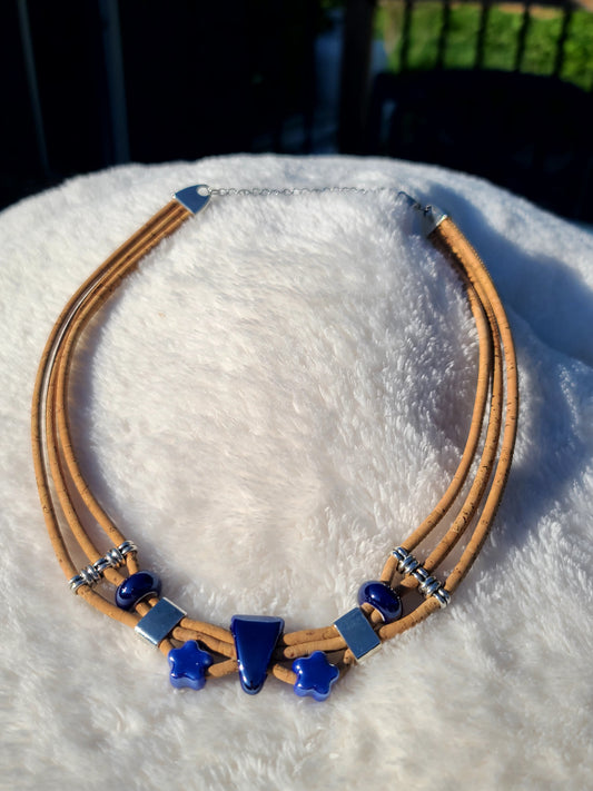 Handmade Midnight Waters: Cork & Dark Blue Necklace