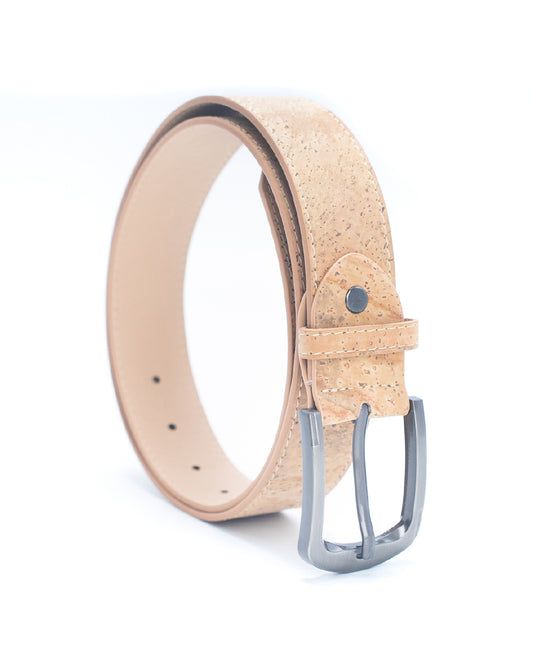 Natural Cork Men's Belt with Thick Black Metal Buckle