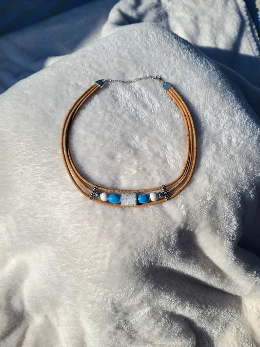 Handmade Seaside Serenity: Cork & Ocean Blue Necklace