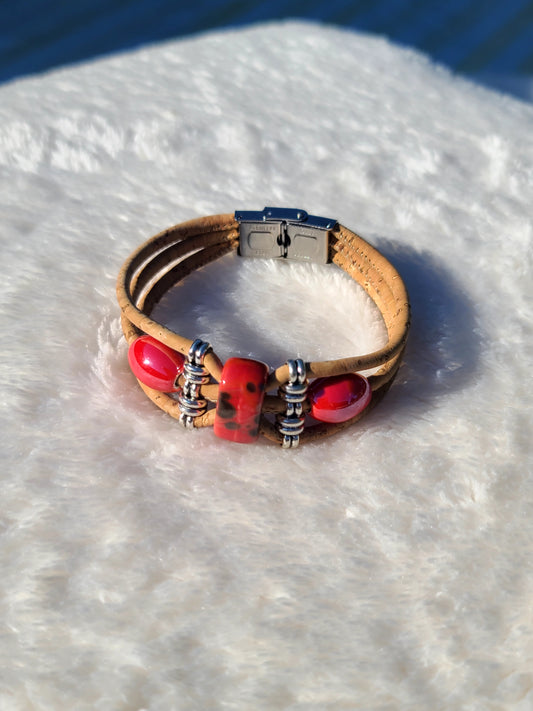 Handmade Scarlet Cork: Bold Red Beaded Necklace