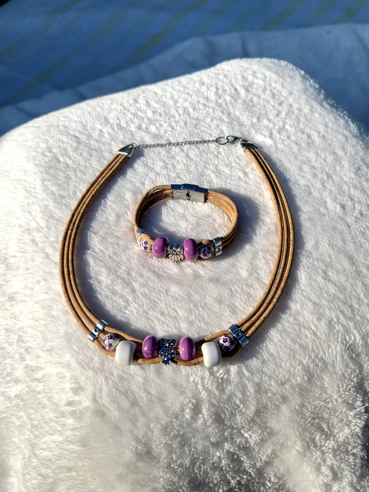 Purple Haze: Cork & Bead Necklace