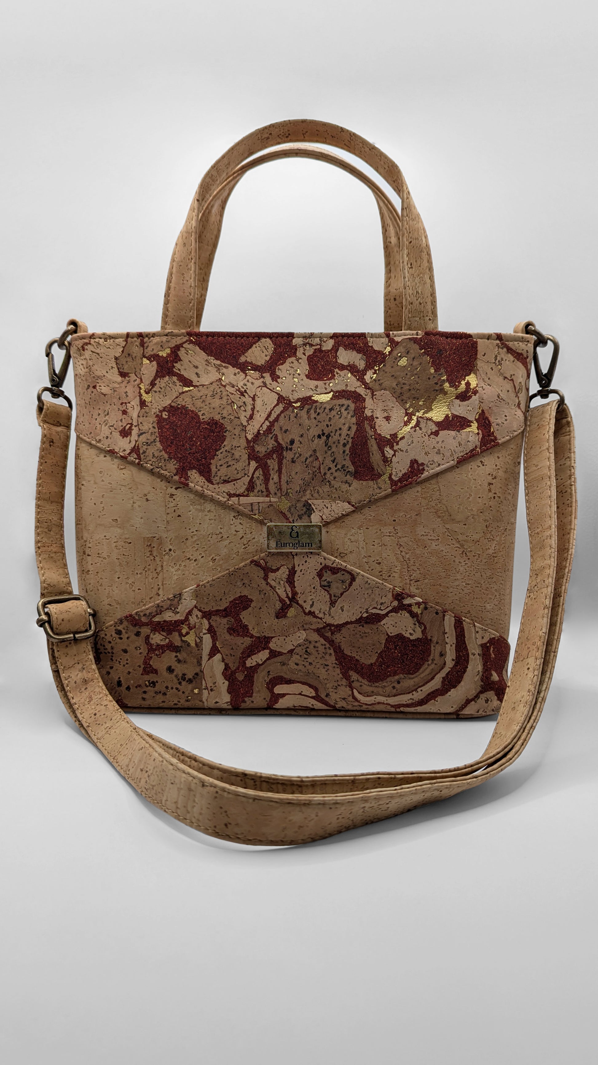 Make a bold yet elegant statement with the Rustic Chic Cork Satchel – a truly unique blend of artistry and sustainability. Handcrafted from natural cork, this striking piece features a mesmerizing marbled pattern in earthy red and beige tones, accented with hints of gold for a touch of luxury. The style flap design adds a modern, geometric touch, while the detachable and adjustable shoulder strap offers versatile styling – carry it as a chic handbag or wear it crossbody for everyday ease. Soft to the touch, lightweight, and water-resistant, this bag embodies the essence of eco-chic fashion.